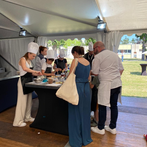 Plongez votre public dans une expérience immersive et participative avec nos ateliers culinaires événementiels ! Nos chefs encadrent vos invités dans la réalisation de recettes gourmandes, offrant un moment convivial et ludique adapté aux salons professionnels, événements grand public et animations en mairie.